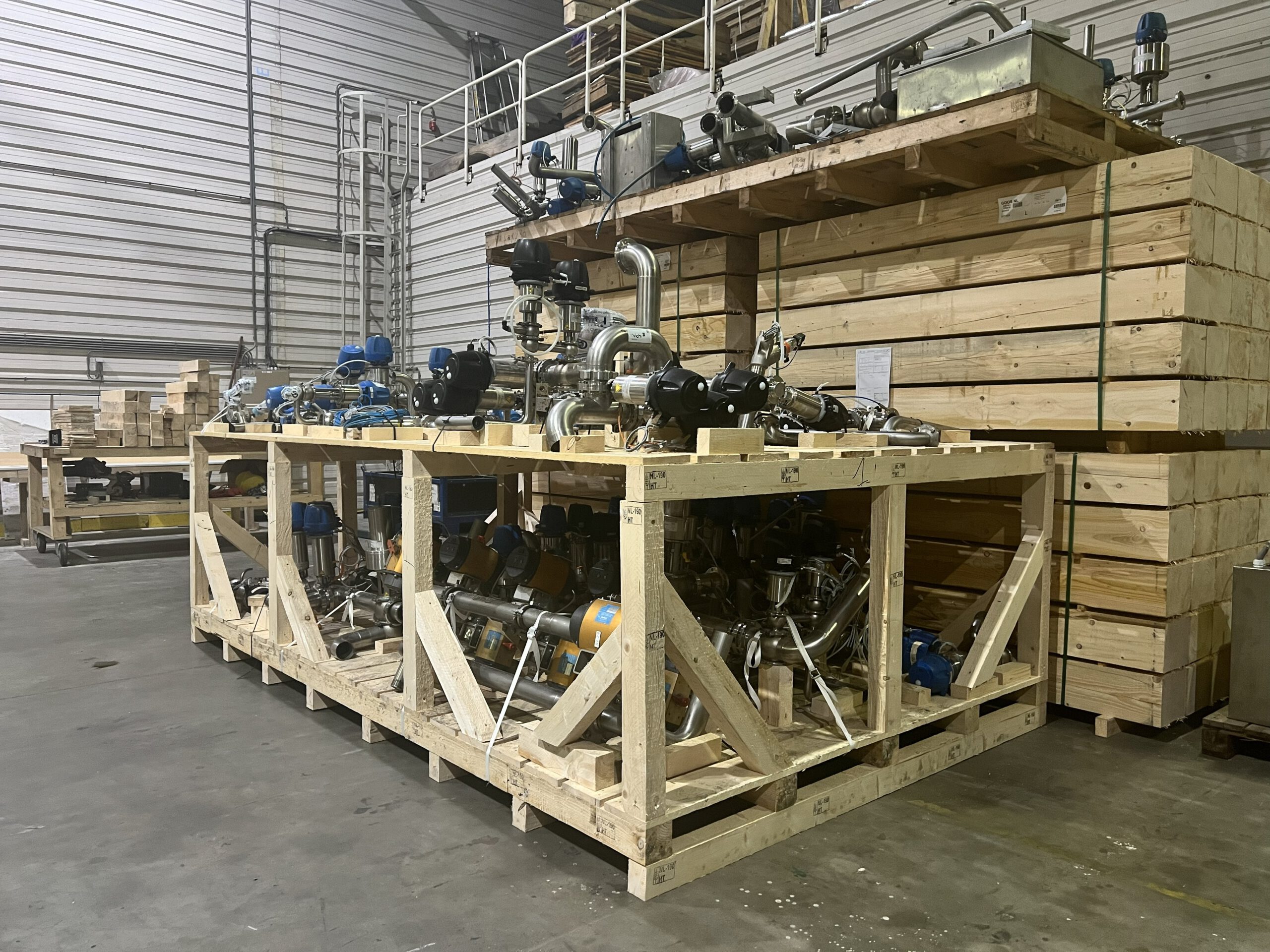 Custom wooden or steel frames designed to support machinery during lifting, transport and installation.