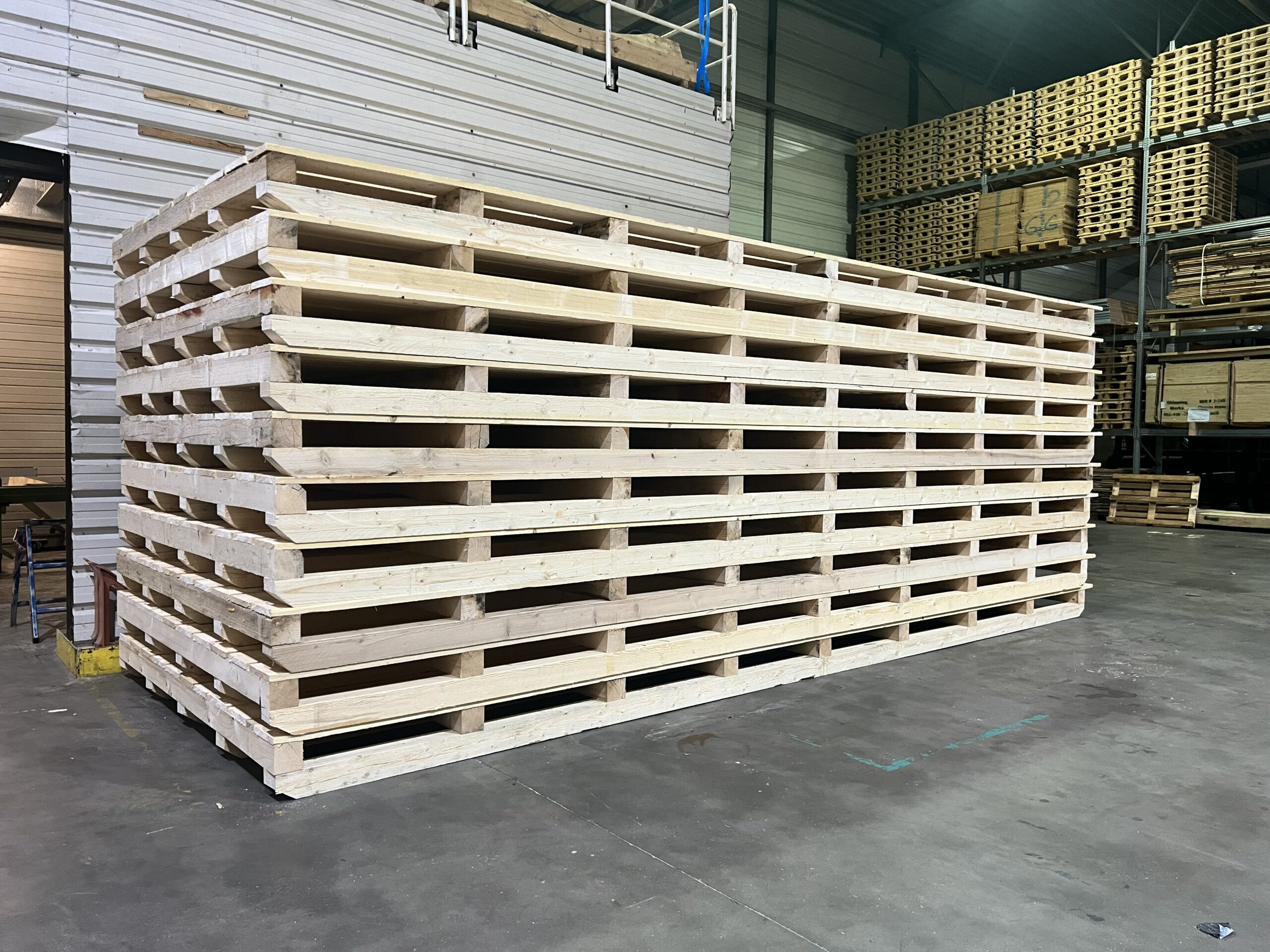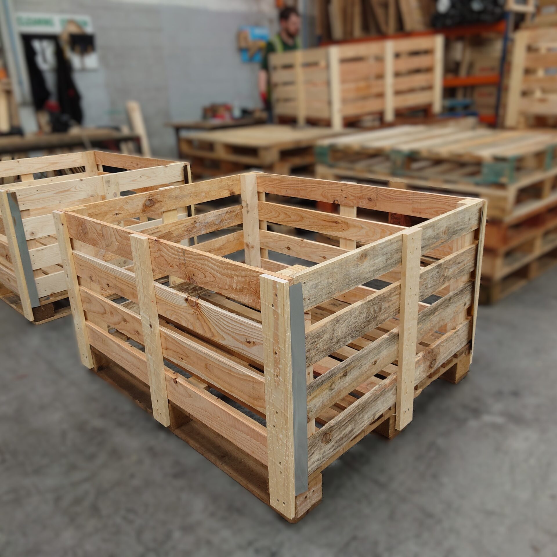 Open wooden bases designed for heavy machinery and industrial equipment, allowing safe lifting, handling and transport.
